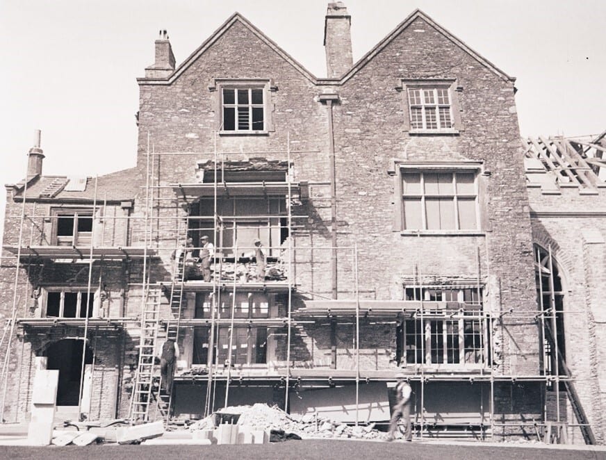 To complete the work, a Dartington-based Engineering and Building department was established, later becoming Staverton Contractors Ltd. Mains water and electrics were installed, and sewage works were built to replace earth closets. Whilst they waited for their new home to be ready, the Elmhirsts stayed in the Seymour Hotel, and later a Victorian house called ‘Elmsleigh’ in Totnes, finally moving in after the first stage of works were completed in September 1926. This would be their family home until Dorothy’s death in 1968.